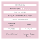 This coffee is the ultimate all-day treat—easy and light, featuring delightful notes of panela, fruit punch, and vanilla. A light roast showcases the hard work behind each cup, delivering an incredibly sweet and clean flavor profile that will keep you coming back for more!